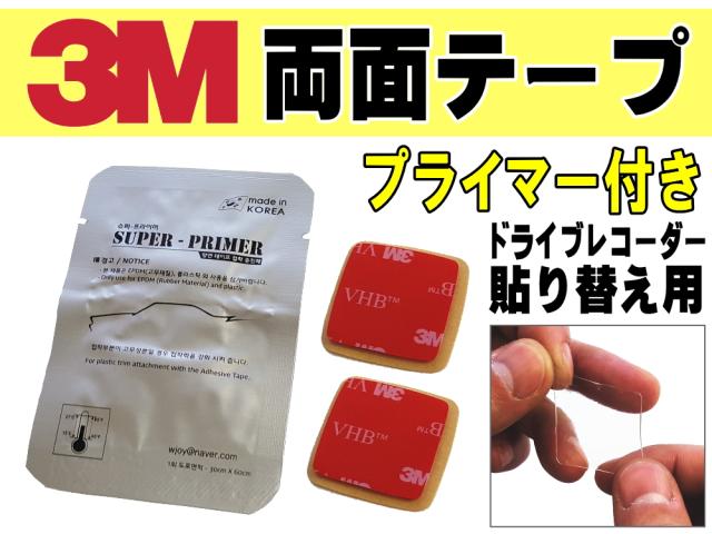 両面テープ プライマー セット 3M社製 テープ2個 2枚1組 ドライブレコーダー取り付けに 貼り替え用 スリーエム 透明 VHBアクリルフォーム 強力クリアテープ 張り替え用 予備付き GPSアンテナにも ドラレコ乗り換え 設置