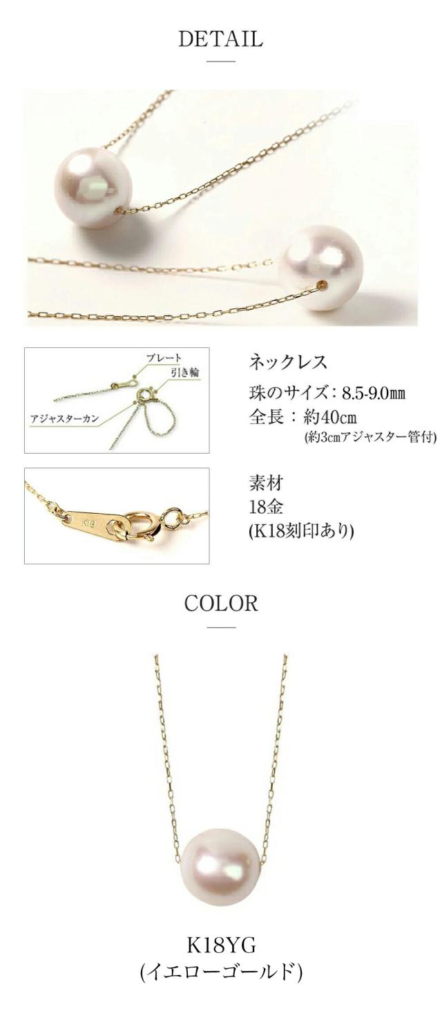 ネックレス パールネックレス 真珠 8.5mm - 9mm 本真珠 パールスルーネックレス K18 18金 あこや真珠 パール一粒 一粒ネックレス あこや本真珠 宇和島 レディース ギフト フォーマル 結婚式 冠婚葬祭 記念日 お祝い 誕生日 プレゼント 女性 アクセサリー 特典 ホワイトデー