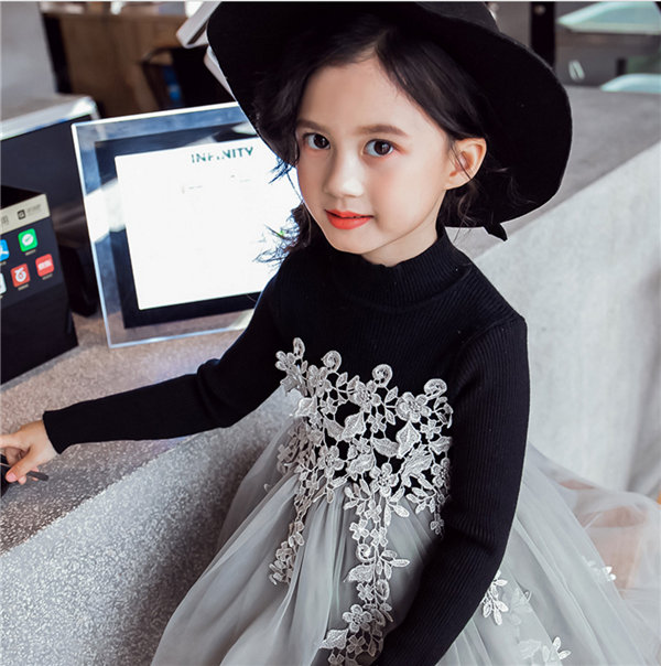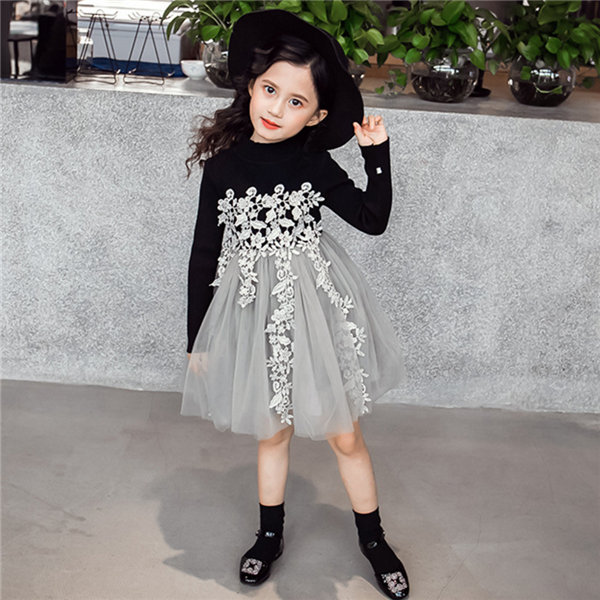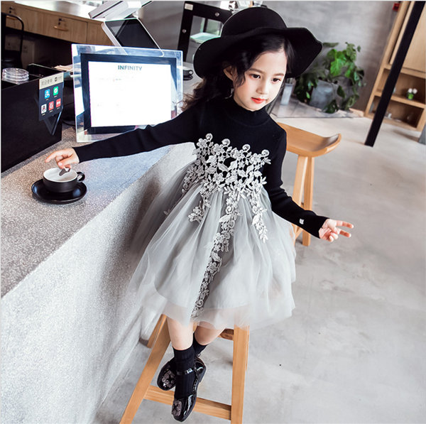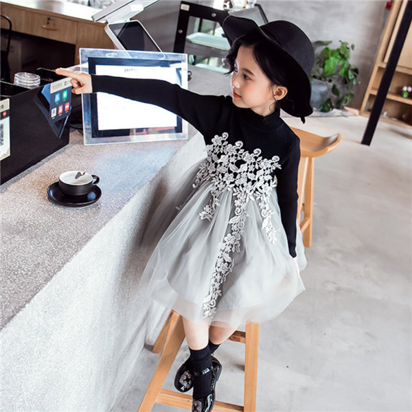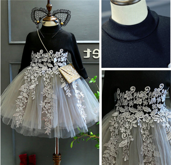 メ便送料無料 ワンピース 女の子 長袖 春秋冬 子供 キッズ チュールドレス 長袖ワンピース 花柄 レース チュールワンピース
