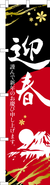 スリム のぼり旗「迎春」初詣 謹賀新年 既製品のぼり 納期ご相談ください【メール便可】 450mm幅