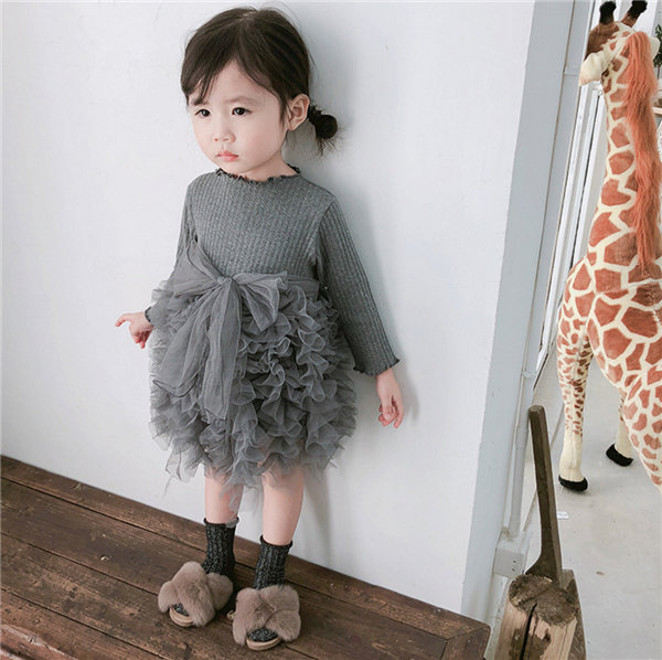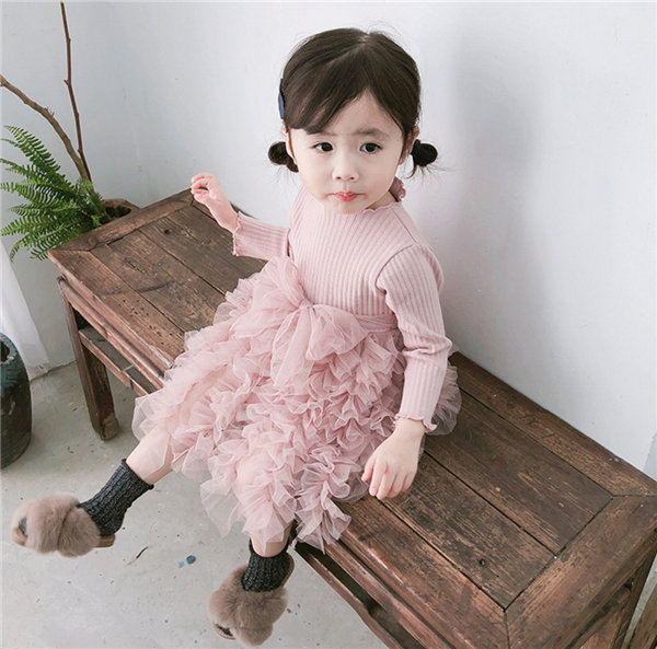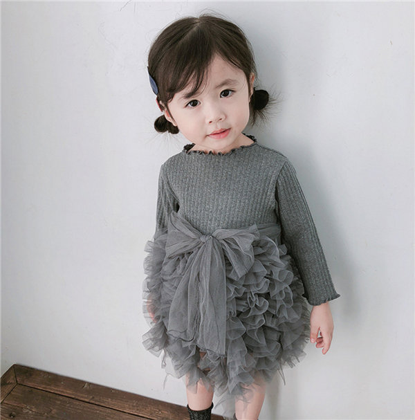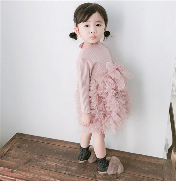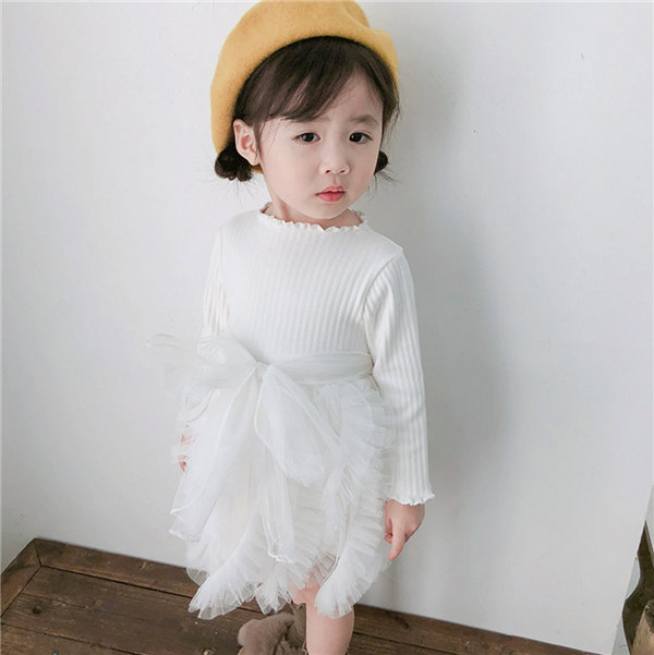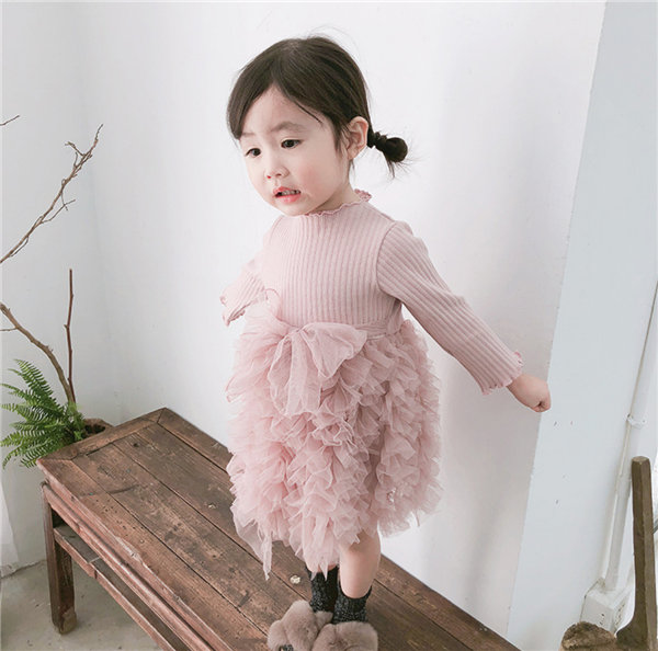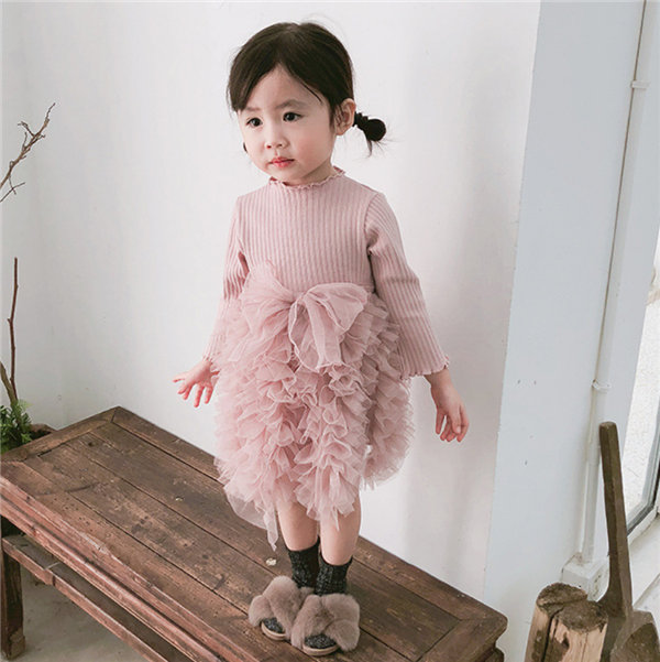 メ便送料無料 ワンピース 女の子 ベビー 長袖 春秋冬 子供 キッズ チュールドレス 長袖ワンピース リボン 蝶結び チュールワンピース