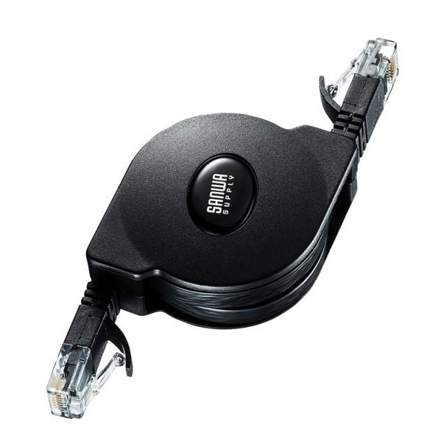 巻き取りLANケーブル CAT6A 最大1.5m ブラック[KB-MK19BK]