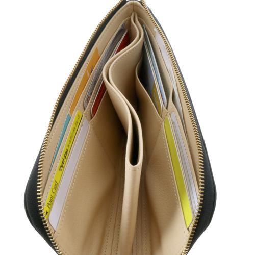 視認性に優れたL字ファスナーを採用したメインルーム内は、仕切りとしての役割も担うオープンタイプの小銭入れがポイント。