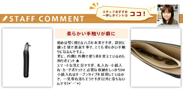 | 備考 | 【メイン開閉】L字ファスナー 内側/ フリーポケット×2 カードポケット×8 札入れ×1 | ||