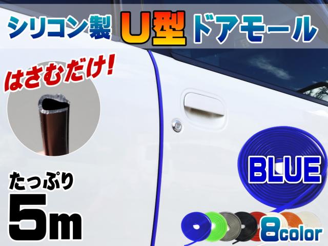 シリコン ドアモール (U型) 青 【商品一覧】長さ5m (500cm) 挟むだけで取り付け簡単 ドアエッジモール 汎用エッジガード 3M両面テープ付属 サイドドアエッジ プロテクター キズ防止(保護) 防傷 自動車用 目立たないデザインでおすすめ マルチカラーモール ブルー