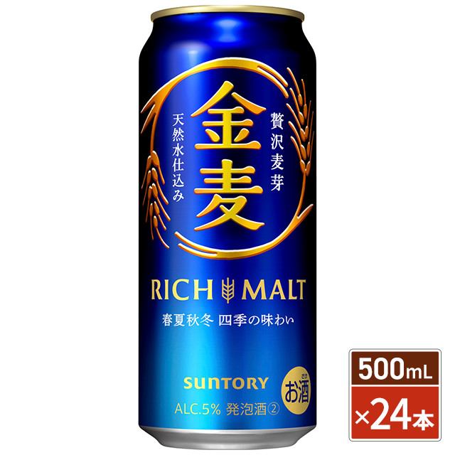 商品名 サントリー 金麦 500mL×24本 容量 500mL×24本 原材料名 発泡酒(国内製造)(麦芽、ホップ、糖類)、スピリッツ(小麦) アレルギー特定原材料 小麦 賞味期限 商品の発送時点で、60日以上あるものをお届けいたします 保存方法 常温 アルコール度数 5%