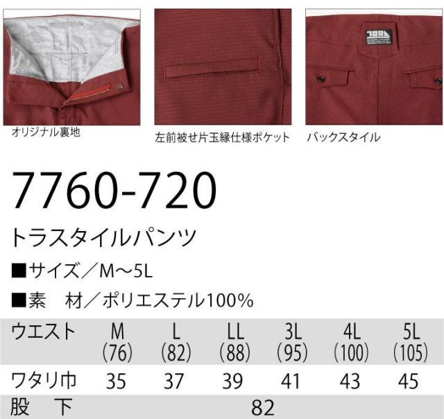 寅壱 トラスタイルパンツ 7760-720 弱ストレッチ 耐久性 オールシーズン 日本製生地 作業着 作業服 作業着 ズボン