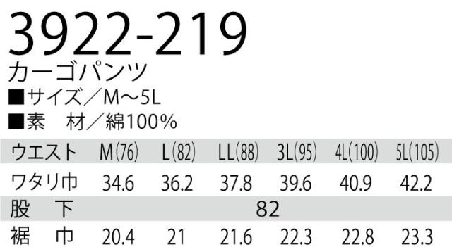 寅壱 カーゴパンツ 3922-219 オールシーズン ズボン 吸汗性 トライチ 3922シリーズ 作業服 作業着【4L-5L】