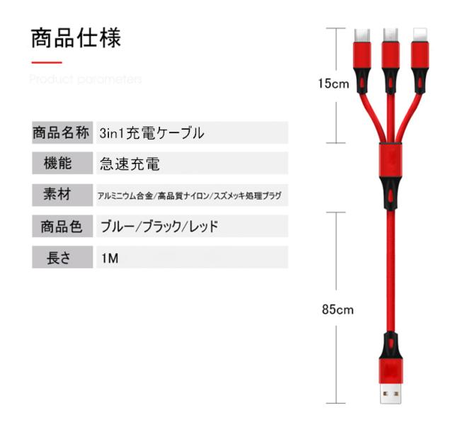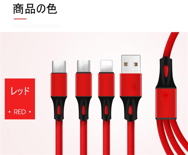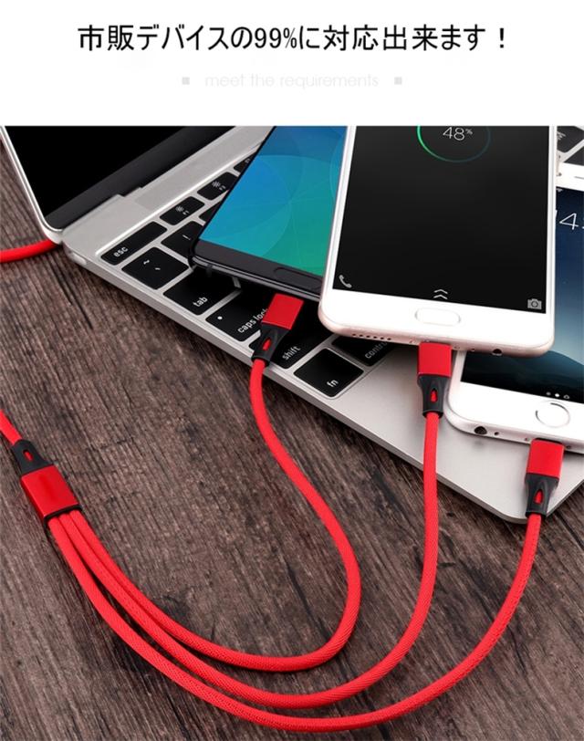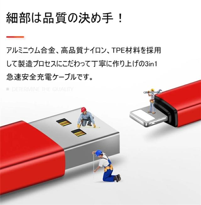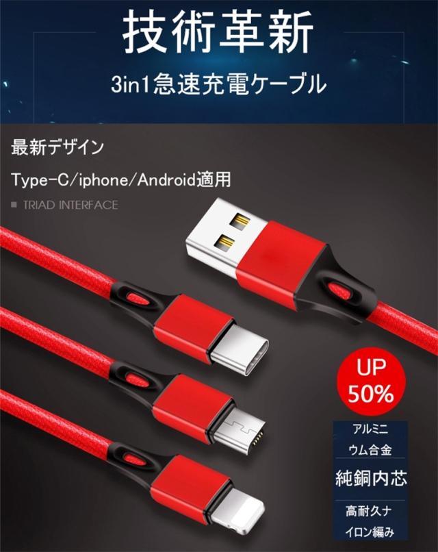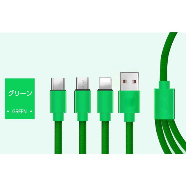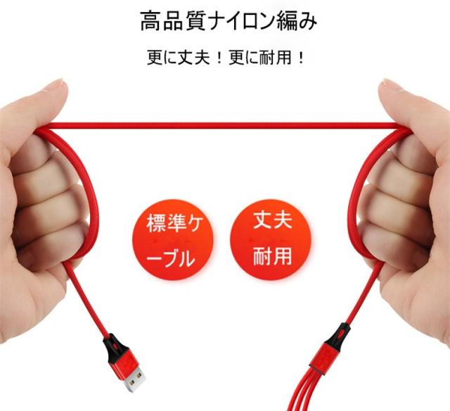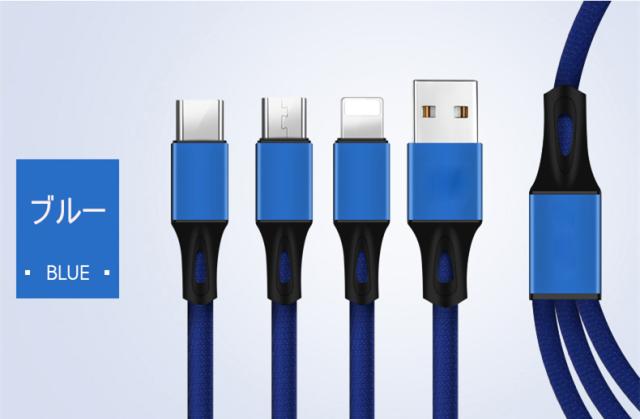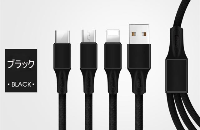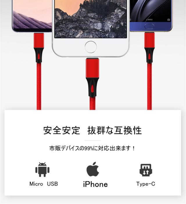 Type-C&Micro USB&iPhone 3in1充電ケーブルケーブル 高耐久ナイロン素材 急速充電 充電ケーブル