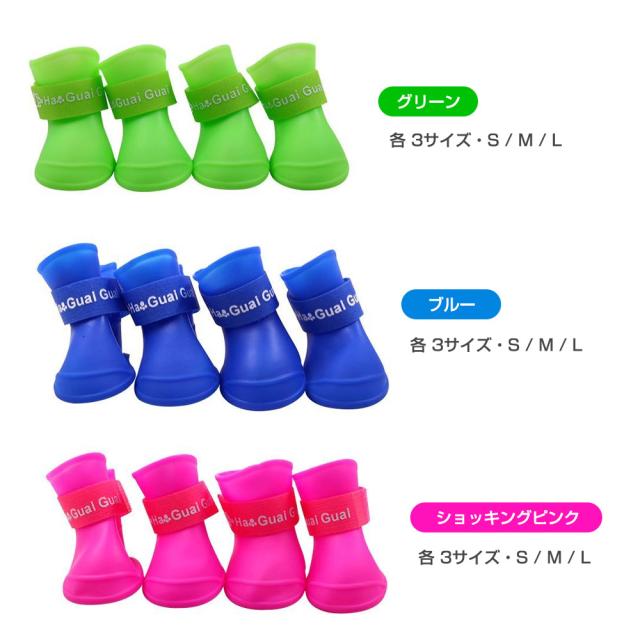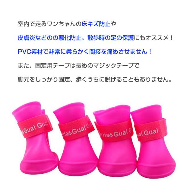 ペットシューズ レインブーツ 4個入り S/M/Lサイズ 小型犬 中型犬 ドッグシューズ 保護シューズ 雨 雪 犬用品 ペット用品 床キズ防止 散歩 足の保護 アスファルト 犬 やけど防止 冬のお散歩 皮膚炎悪化防止 デリケート PVC素材