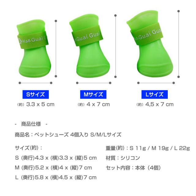 ペットシューズ/レインブーツ/4個入り/S/M/Lサイズ/小型犬/中型犬/ドッグシューズ/保護シューズ/雨/雪/犬用品/ペット用品/床キズ防止/散歩/足の保護/アスファルト/犬/やけど防止/冬のお散歩/皮膚炎悪化防止/デリケート/PVC素材/