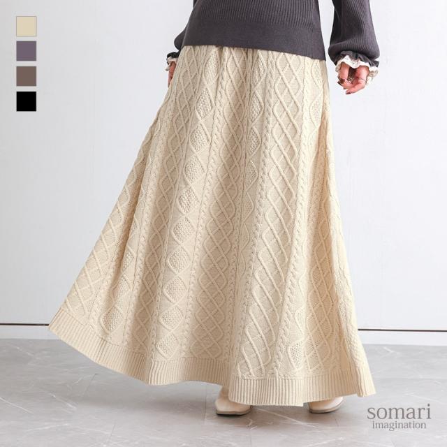 ぽっちゃり 体型カバー 大きいサイズ ロング丈ニット レディース ボトムス スカート ニットスカート ロングスカート マキシ丈 フルレングス Aライン ケーブル編み 編み地 無地 あったか ふわふわ 秋冬 カジュアル 大人女子 大人可愛い きれいめ シンプル Sサイズ Mサイズ Lサイズ LLサイズ 3Lサイズ XLサイズ フリーサイズ somari imagination ソマリイマジネーション ホワイト 白 アイボリー ブラック 黒 ブラウン 茶色 モカ グレイッシュモカ 紫 ラベンダー グレイッシュパープル おうちで洗える 【スカート】[ID]yy-1199_sas1116