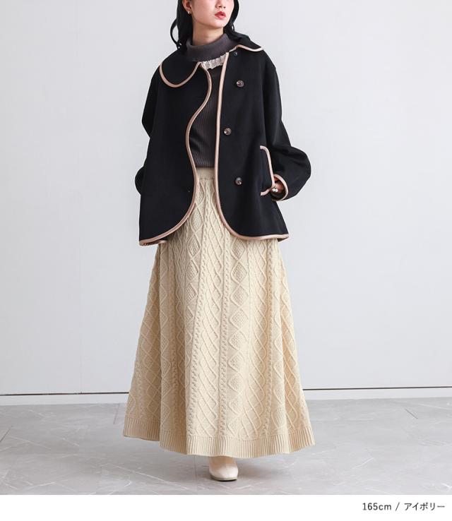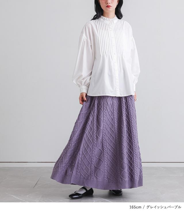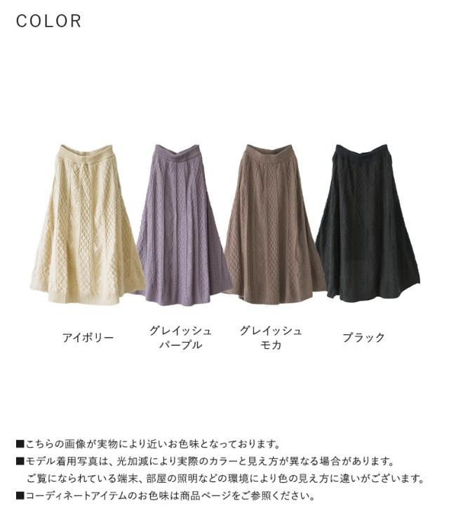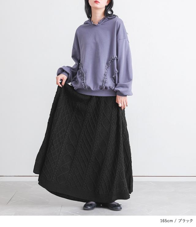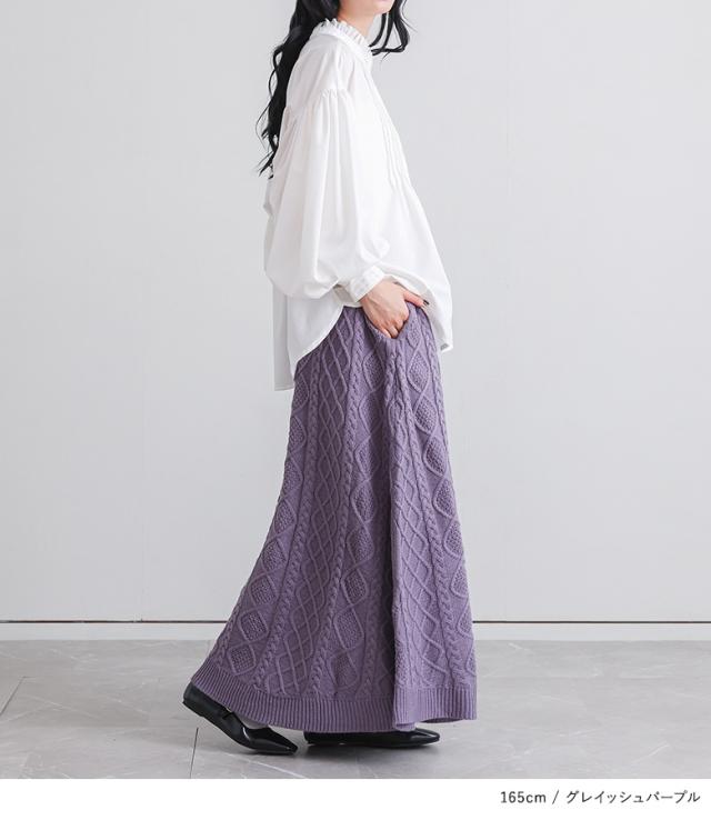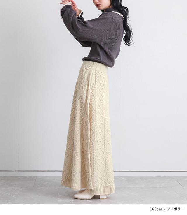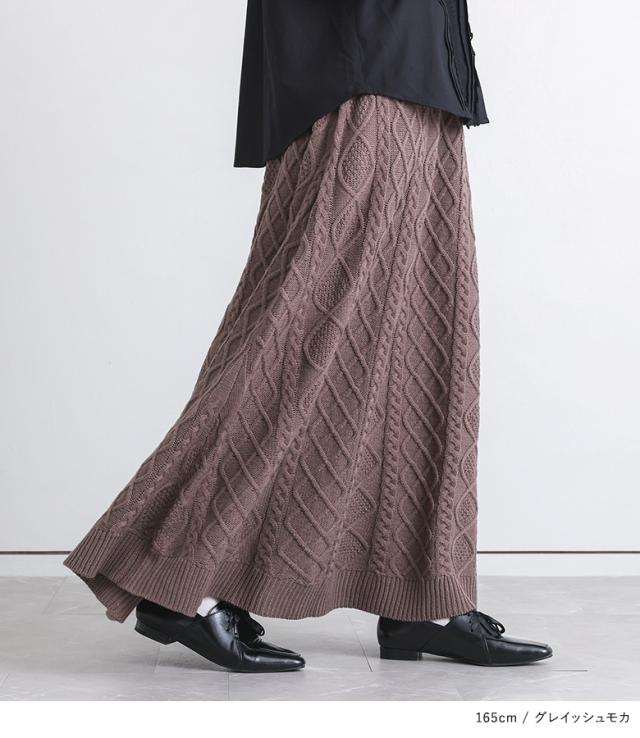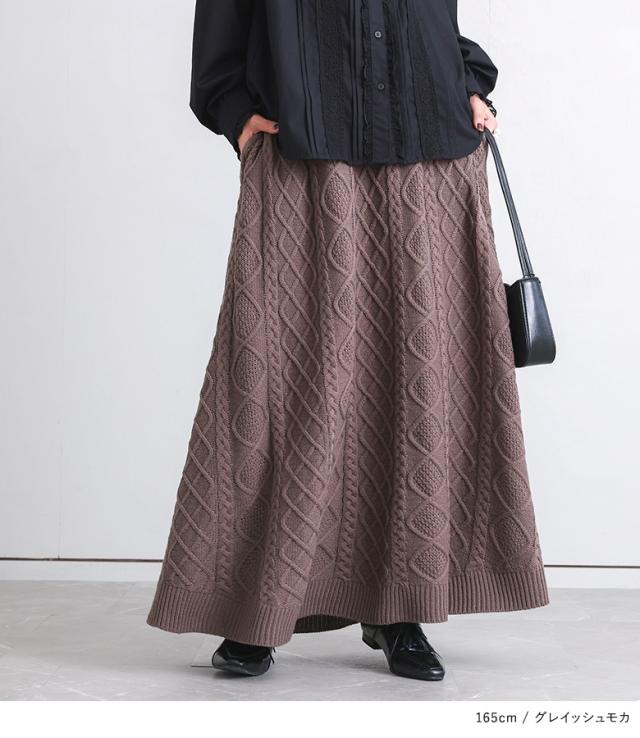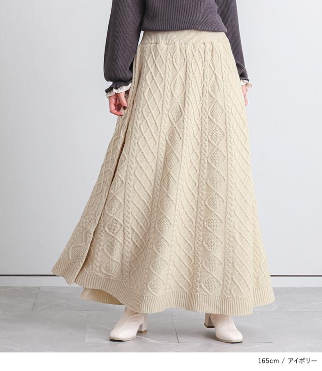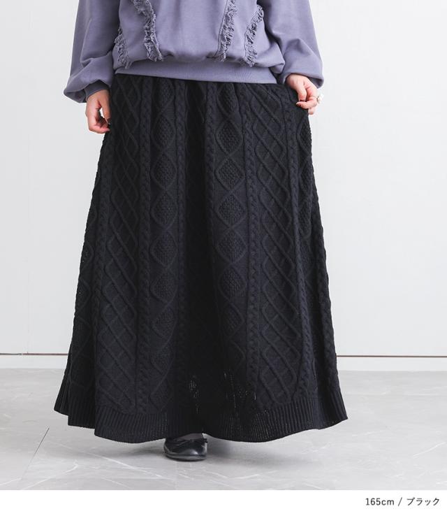 『ケーブルニットスカート』 【メール便不可】【40】[ニットスカート レディース ボトムス ロングスカート Aライン ケーブル編み ウエストゴム シャーリング ストレスフリー 無地 sas1116]