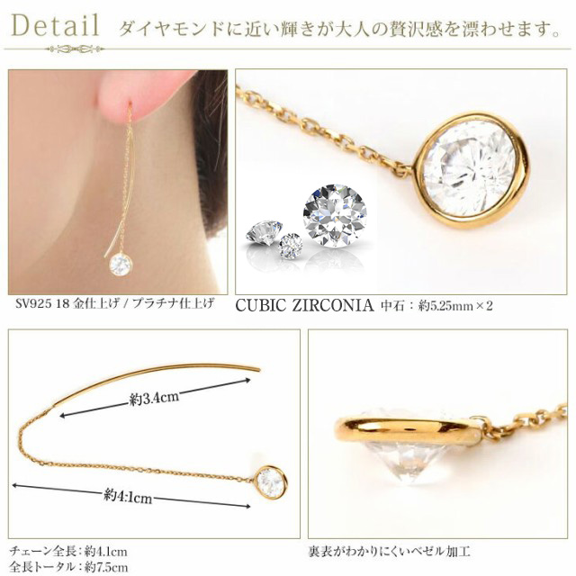 | スペック | ピアス チェーン全長(石含む):約4.1cm 全長トータル:約7.5cm |