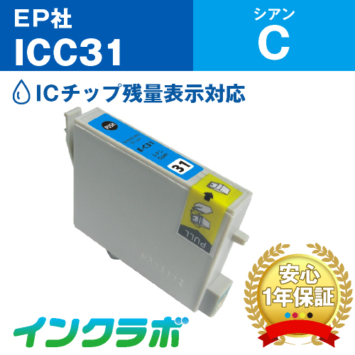 インクラボでは、EPSON(エプソン)、純正インクカートリッジ ICC31(シアン)対応の互換インクカートリッジを格安で販売しております。純正品と同様にインクカートリッジには1年保証が付いていますので安心してお買求めいただけます。インクラボでは、事業者様の印刷コスト削減をお手伝いしております!