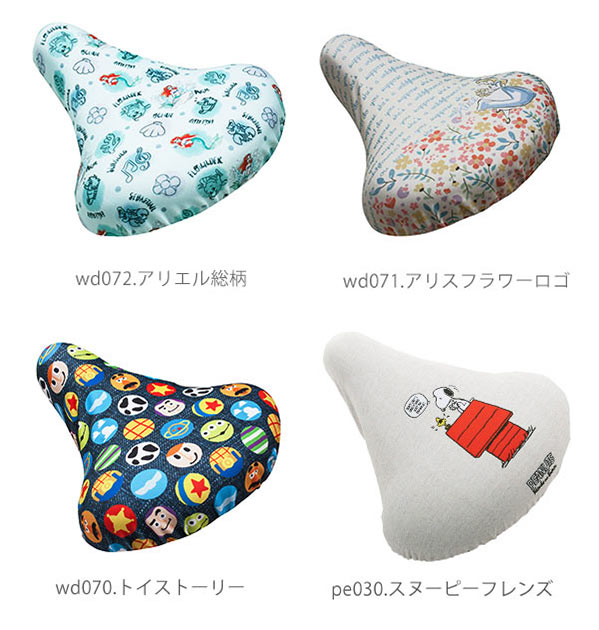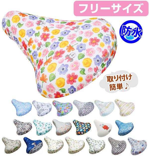 【キーワード】サドルカバー aile エール 通販 かわいい おしゃれ 自転車サドルカバー キャラクター 自転車用 チャリCAP チャリキャップ じてんしゃサドルキャップ フリーサイズ トイストーリー すみっコぐらし ミニー 撥水加工 アリエル アリス ラプンツェル スマイル のびーるチャリCAP