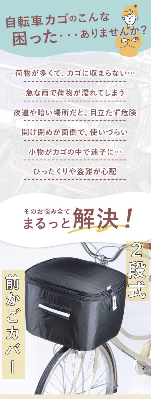 前かごカバー ワイド 通販 前カゴカバー 自転車カバー keia+ かごカバー 自転車 かご カバー 前 2段式 丈夫 定番 可愛い かわいい おしゃれ ひったくり 防犯 KW-245