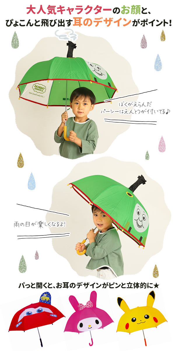 キッズ傘 耳付き傘 こども傘 ディズニー サンリオ キッズ こども 通販 幼稚園 保育園 子供 男の子 女の子 通園 通学 キャラクター傘 レイングッズ プーさん マイメロディ トーマス
