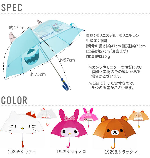 | 商品名 | 耳付き傘 ディズニー サンリオ 47cm |