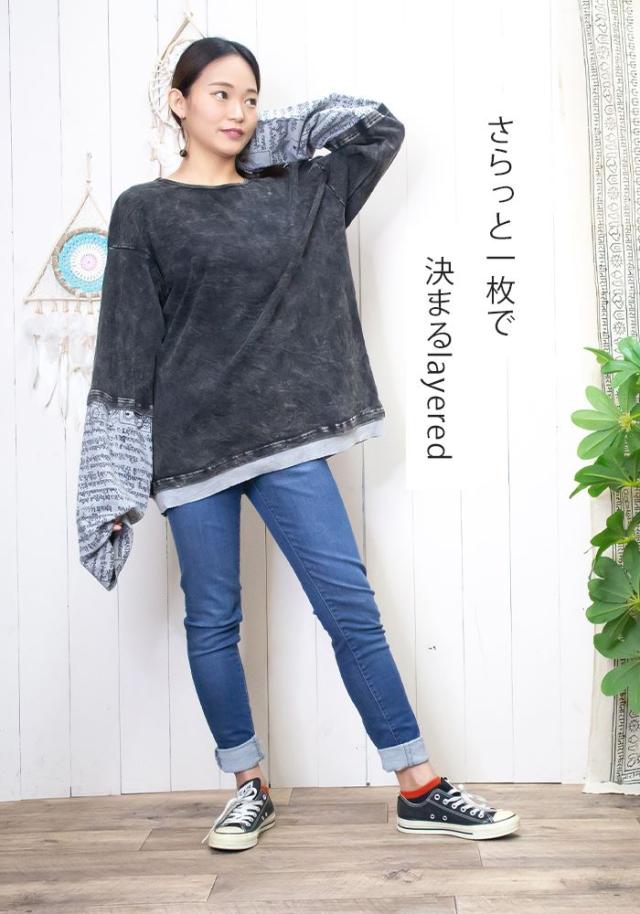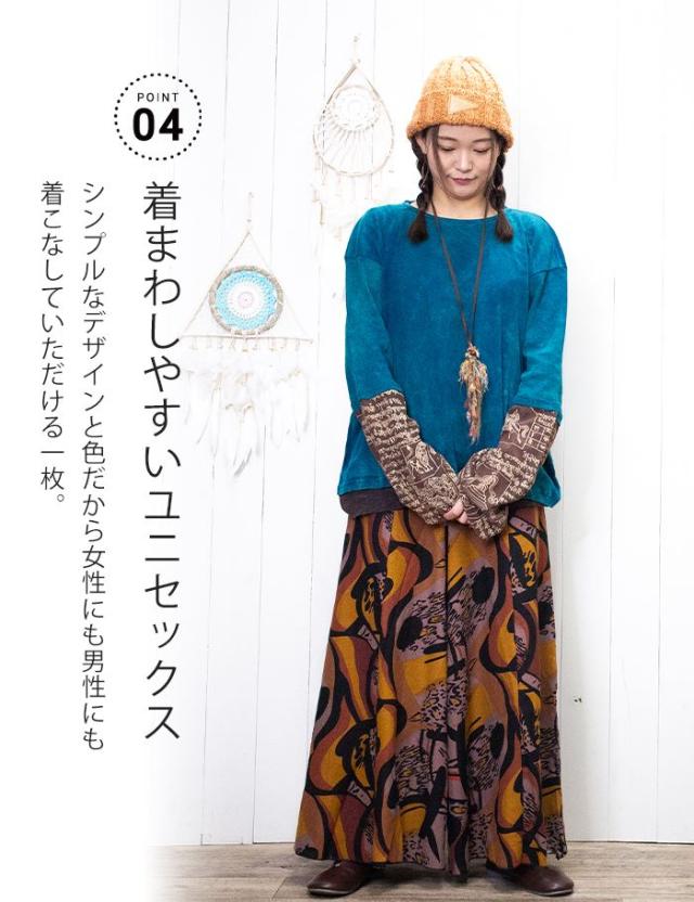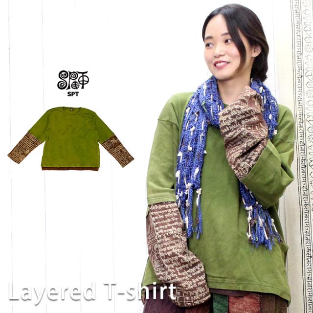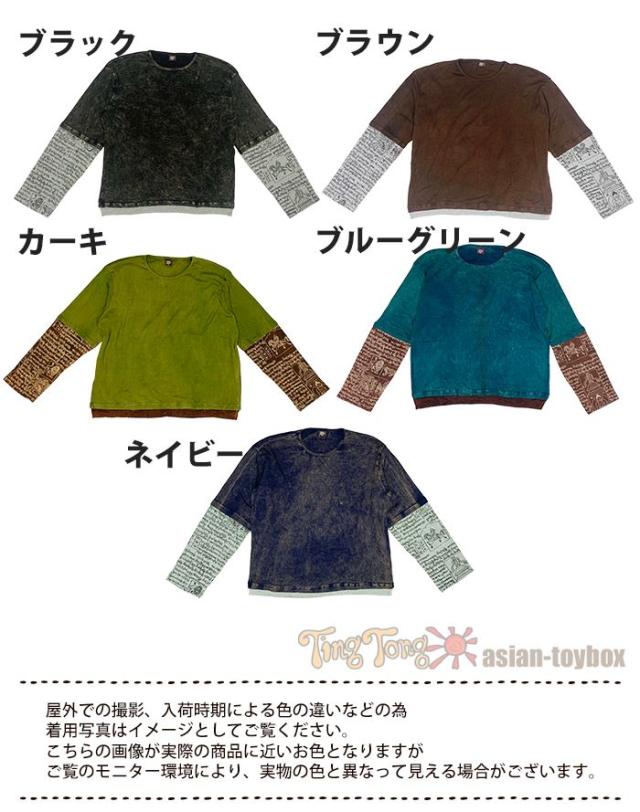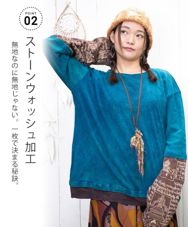 Tシャツ ロング 長め レイヤード お洒落 ユニセックス レディース メンズ 長袖 【SPT】 アジアン プリント BIG レイヤー ロングスリーブ Tシャツ 2025年春夏