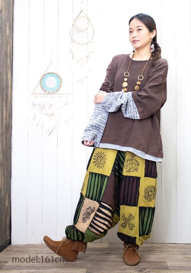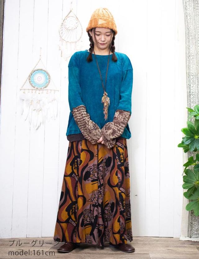 アジアンプリントのロングスリーブや