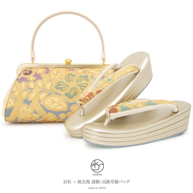 ブランド『岩佐(いわさ)』と創美苑がコラボした女性用の草履とバッグのセットです。