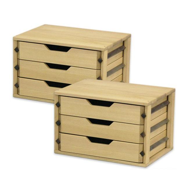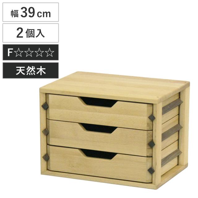 ミニチェスト A4 3段 2個セット レターケース 天然木 ビーチ材 ( 開梱設置 チェスト 収納 小物収納 引き出し 卓上 デスク 木製チェスト 書類 小物入れ 無垢材 完成品 木製 )