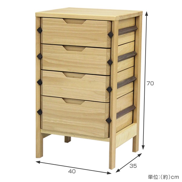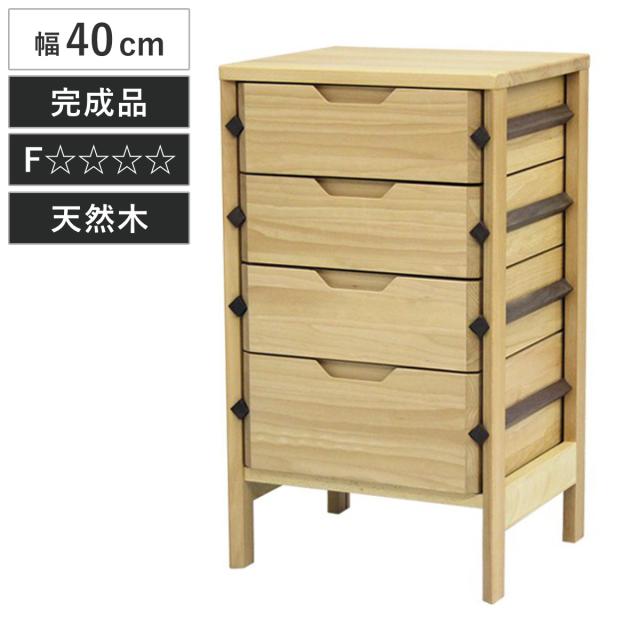 サイドチェスト 4段 天然木 ビーチ材 幅40cm ( 開梱設置 チェスト タンス 収納 引き出し 木製チェスト ミニチェスト 書類 ベッドサイド 整理棚 小物入れ 無垢材 完成品 木製 )