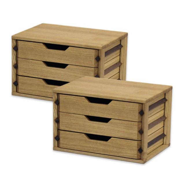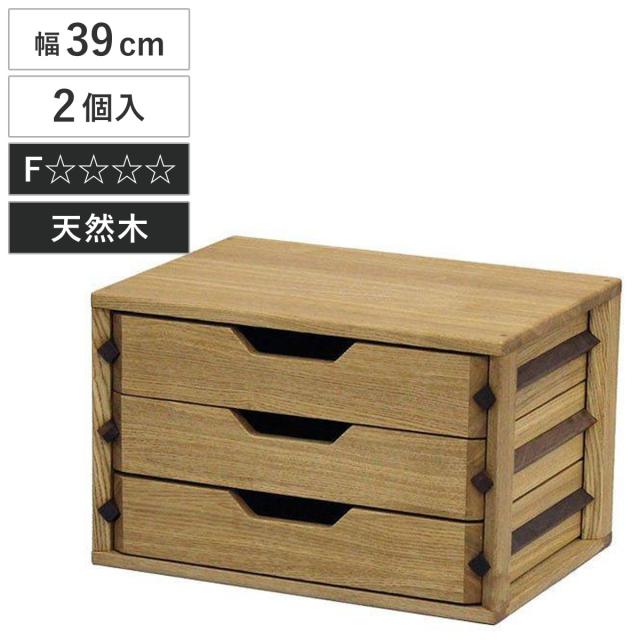 ミニチェスト A4 3段 2個セット レターケース 天然木 タモ材 ( 開梱設置 チェスト 収納 小物収納 引き出し 卓上 デスク 木製チェスト 書類 小物入れ 無垢材 完成品 木製 )