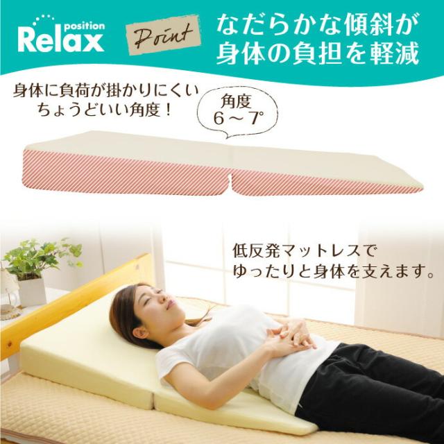 体をゆったり支える傾斜のある枕型マット