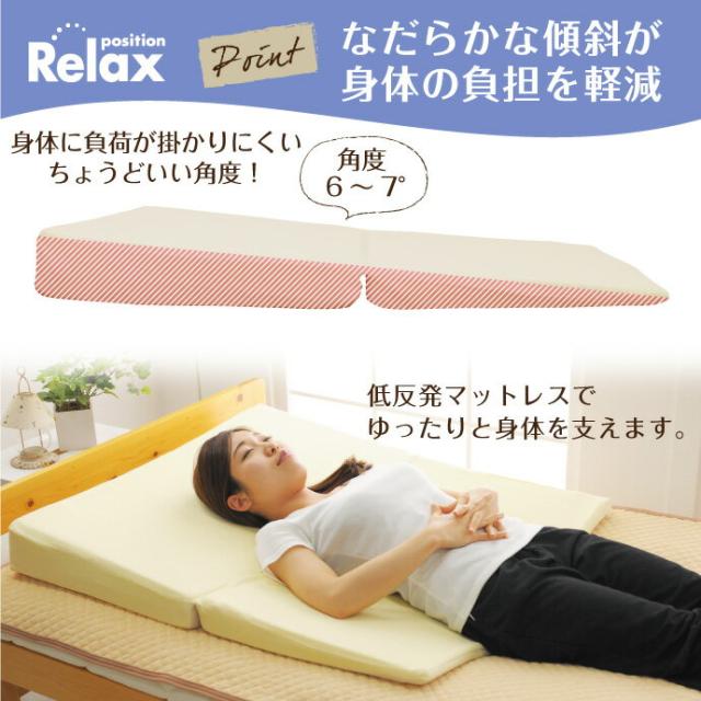 体をゆったり支える傾斜のある枕型マット