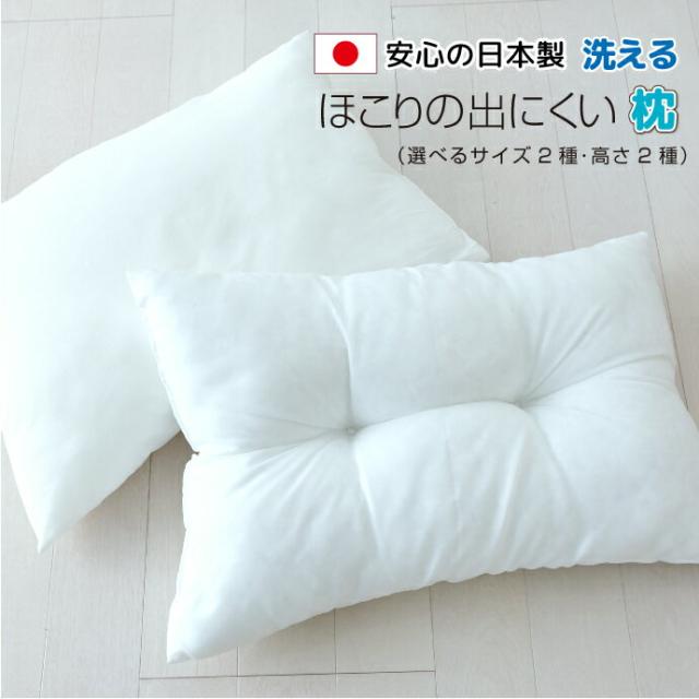 枕 洗える 日本製 約43×63cm or 約35×50cm ウォッシャブル まくら 高め 低め 選べる4種類 くぼみ 無地 国産 ピロー