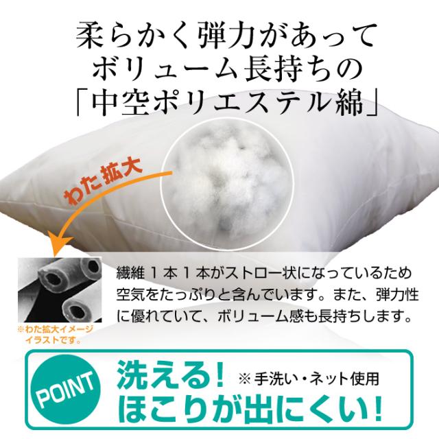 ほこりが出にくい、柔らかく弾力がある中空ポリエステル綿を使用。