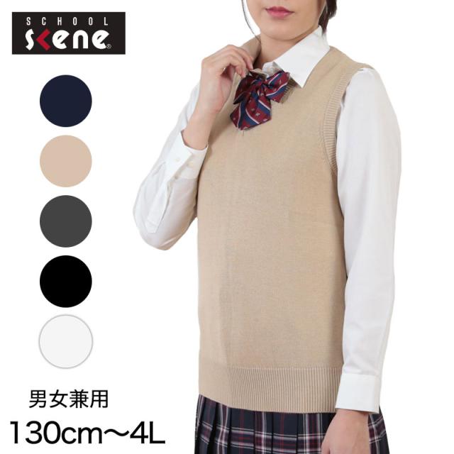 スクールベスト 綿混 女子 ベスト ニット スクール 130cm〜4L (ニットベスト スクールニット 男子 レディース 学生 制服 中学生 高校生) (取寄せ)