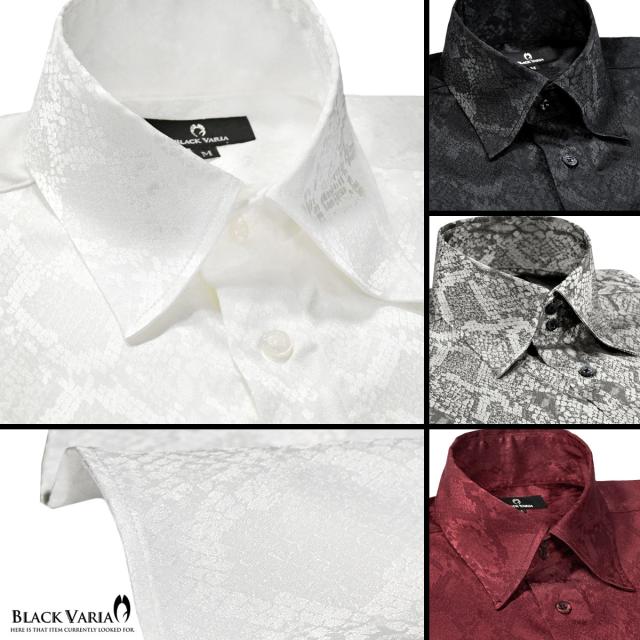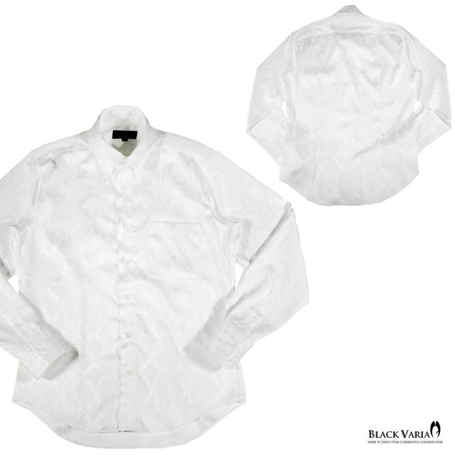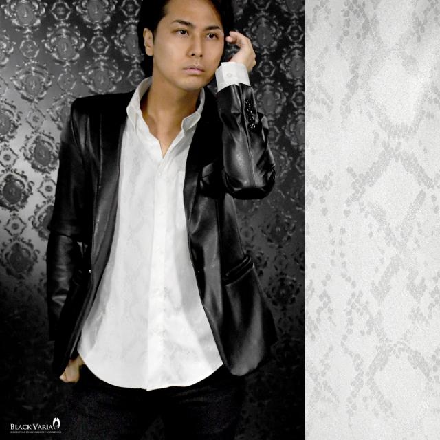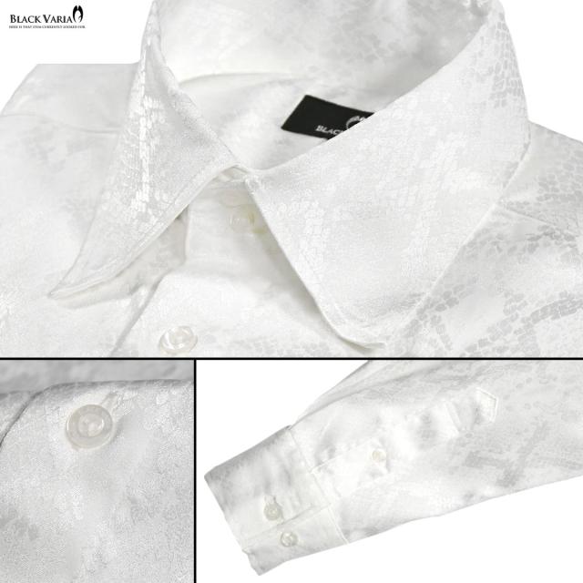 サテンシャツ ドレスシャツ 長袖 ドゥエボットーニ パイソン 蛇 日本製 レギュラーカラー ジャガード メンズ(ホワイト白) 181711