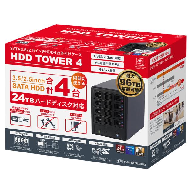 HDDケース ハードディスクケース MARSHAL 3.5インチ 2.5インチ ケース USB3.0 HDD4台 外付けHDD 24TB 最大96TB 冷却ファン 個別スイッチ