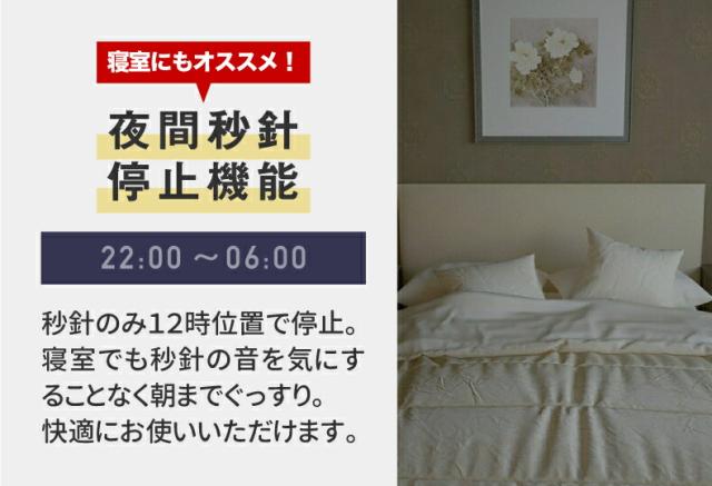 ●夜間秒針停止機能が付いているので寝ている時の時計の音が気になる人も快眠できます!