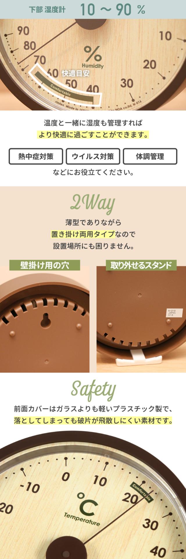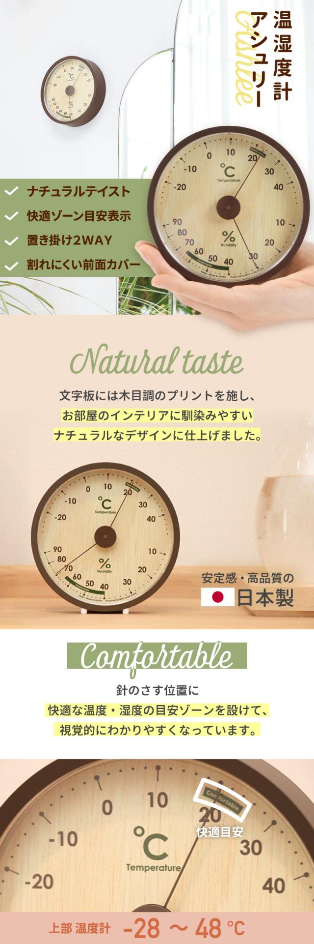 【ポイント10倍 送料無料】温度湿度計 アシュリー 温度計 温湿度計 温湿計 アナログ 置き 掛け 兼用 風邪対策 ウィルス対策 ナチュラル 観葉植物 小型 スリム コンパクト ミニ 木目調 便利グッズ デザイン インテリア おしゃれ シンプル プレゼント 新生活 ノア精密 ギフト