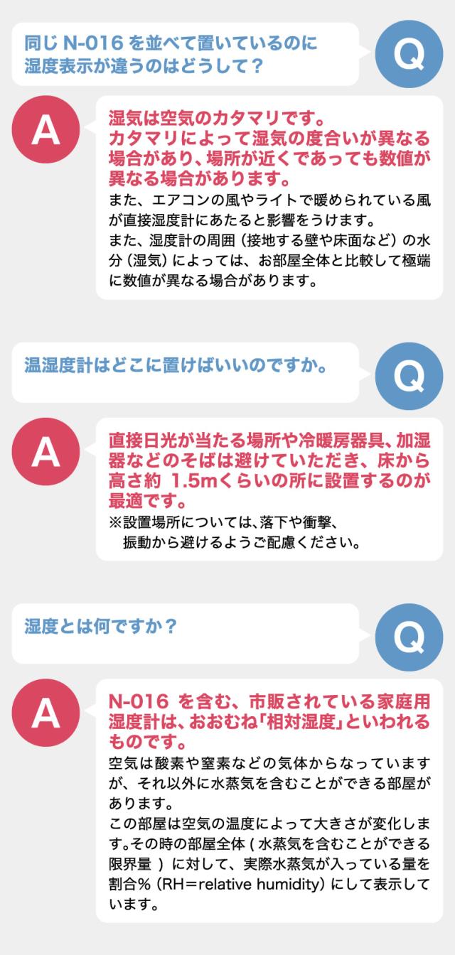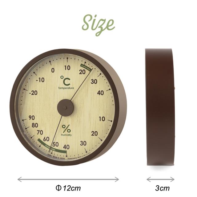 | 機能 | 温度計 (-28℃〜+48℃) 湿度計 (10〜90%) 環境表示 (快適ゾーン表示) スチール文字板、置き掛け両用 |