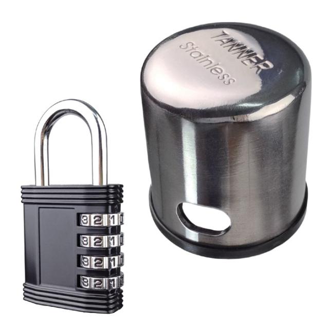 防犯のために、ピッキング(錠のシリンダー部分を操作して解錠すること)防止対策の鍵が出回っている反面、従来タイプの鍵も多くあります。特に、ドアノブに鍵が付いているタイプは、ピッキング対策がされていないものがほとんど。本製品は、そんなドアノブを上から被ってしまいピッキングができないようにする物です。ドアノブに被せて南京錠でロックすればOK。本体は、分厚い2.5ミリ厚のステンレス鋼を採用してます。国内製品の殆どの鍵付きドアノブに対応してます(一部、取り付けできないものもございます)。