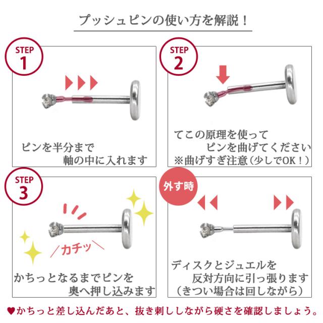 ピアス 0.035ct 立爪 天然ダイヤモンド プッシュピン ラブレット【片耳用】 20G 18G 16G 14G 軟骨ピアス ファーストピアス セカンドピアス ボディピアス ピアッシングナナピアッシングナナ