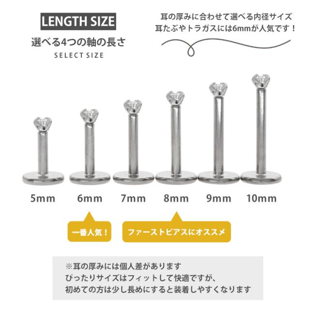 太さは普通のピアスと同じ20ゲージ、ボディピアスで定番の18ゲージ、16ゲージ、14ゲージから選べます。