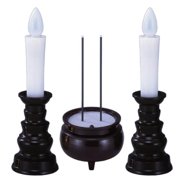 ■材質/ろうそく:炎/PE、ろうそく/PP、燭台/ABS、光源/黄色LED お線香:線香・香炉/ABS、光源/赤色LED