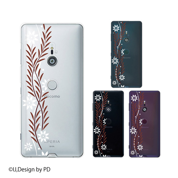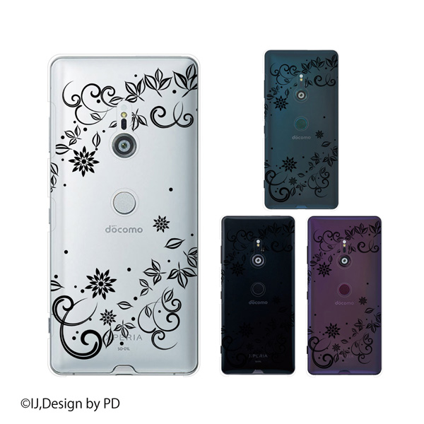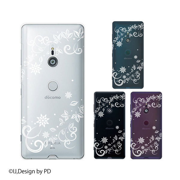 Xperia XZ3 (docomo SO-01L / au SOV39 / SoftBank 801SO) (純正卓上充電対応) スマホ ケース カバー フラワーシルエット2