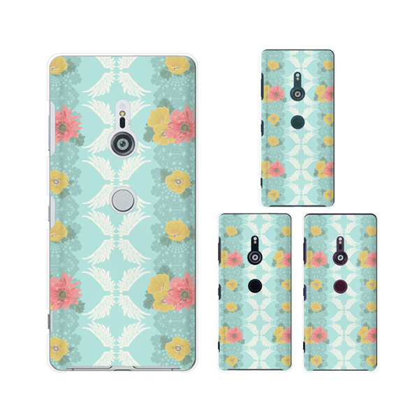 Xperia XZ3 (docomo SO-01L / au SOV39 / SoftBank 801SO) (純正卓上充電対応) スマホ ケース カバー 花柄34 羽 水色
