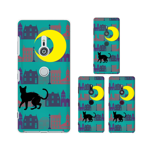 Xperia XZ3 (docomo SO-01L / au SOV39 / SoftBank 801SO) (純正卓上充電対応) スマホ ケース カバー 街 月 猫 グリーン