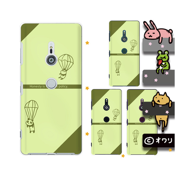 Xperia XZ3 (docomo SO-01L / au SOV39 / SoftBank 801SO) スマホ ケース カバー オワリ 「パンダパラシュート」 グリーン