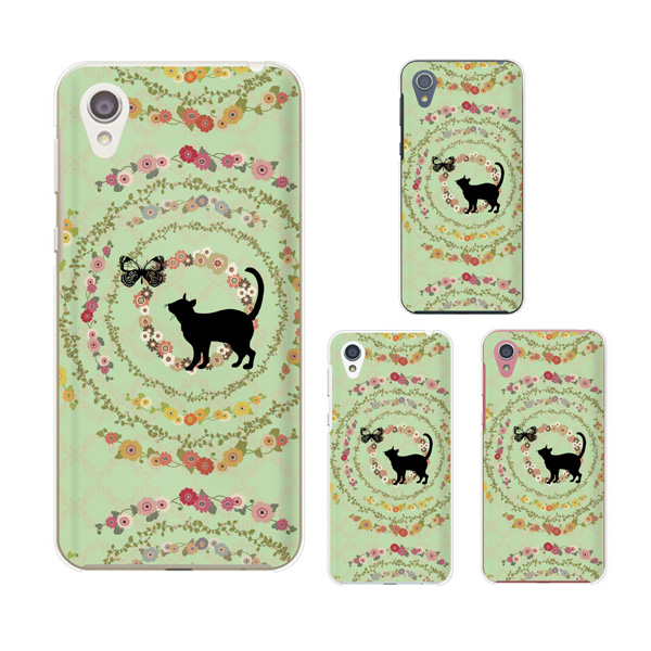 AQUOS sense2 (docomo SH-01L / au SHV43) スマホ ケース カバー 蝶と猫2 花 グリーン