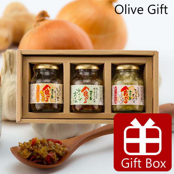 食べるオリ-ブオイル 3品セット kgp-101セット内容食べるオリーブオイル145g×1個食べる生姜オリーブオイル漬け145g×1個食べる玉ねぎ175g×1個かければ何でもごちそうになる。あたたかいご飯にかけて、美味しいセットです。 素麺やうどん、豆腐、料理の味付けにもお使いいただけます。★オリーブオイルのギフトは、様々な用途に使えます。母の日・父の日・クリスマス・お誕生日・バレンタインなどのプレゼントギフト 新築内祝・成人祝い・成人内祝・入学祝い・入学内祝・入園祝い・入園内祝・初節句内祝い・節句内祝・七五三祝い 七五三内祝・就職祝い・就職内祝・退職祝い・敬老祝い等の各種内祝い(お返し)、香典返し、満中陰志、一周忌 三回忌・七回忌など法事引き物、父の日・母の日・お誕生日祝い・プレゼント・還暦祝い・退職祝い・退職記念 記念日等のお祝い、お中元・お歳暮・ゴルフコンペやボーリング大会の賞品や記念品・ノベルティ・キャンペーンなど