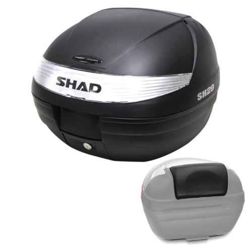 [セット] 29L バイク トップケース リアボックス SH29 無塗装ブラック バックレスト SHAD 通勤 通学 キーレス 開閉可 フルフェイス 収納